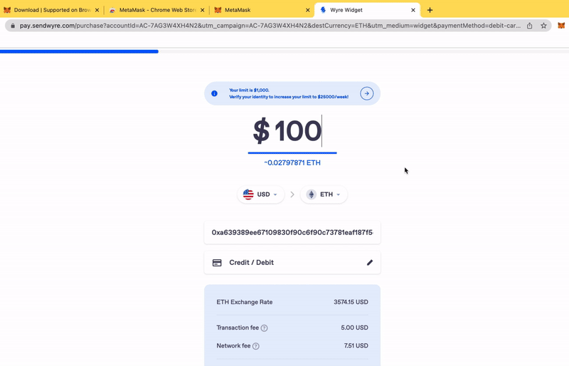 Continue to Wyre (Wyre widget should open in new window)