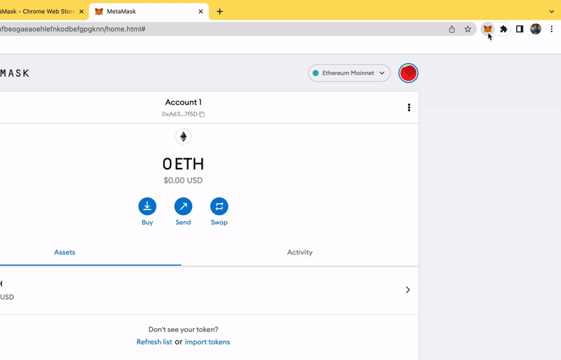Click your MetaMask browser Plugin